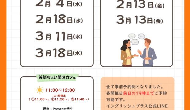 1,000円で学べるEnglish Cafe【2月、3月】